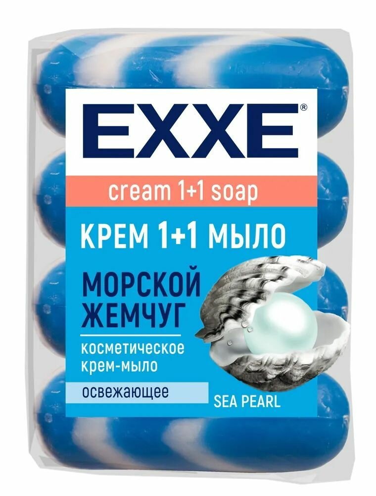 Купить Крем-мыло Exxe 1+1 Морской жемчуг, 4*90 г (синее, полосатое)