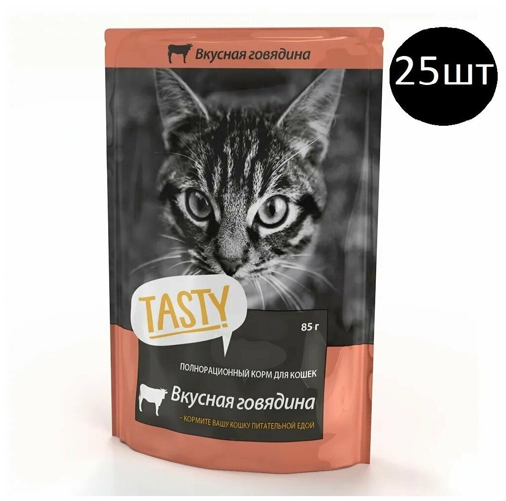 Влажный корм TASTY для кошек с говядиной в желе пауч 85г (25шт.)