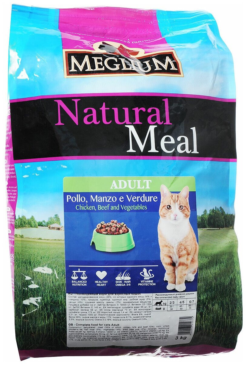MEGLIUM ADULT 3 кг корм для кошек говядина, курица, овощи