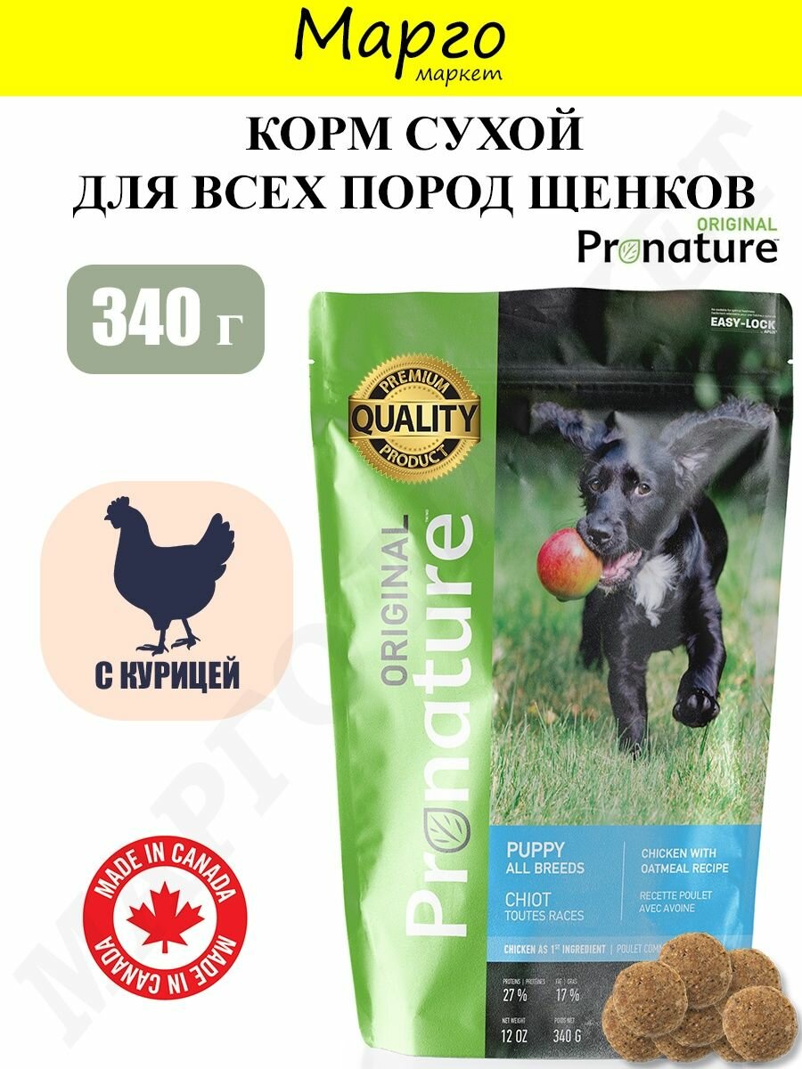 Купить Сухой корм для щенков ProNature Original, курица, с овсянкой 1 уп. х 1 шт. х 340 г