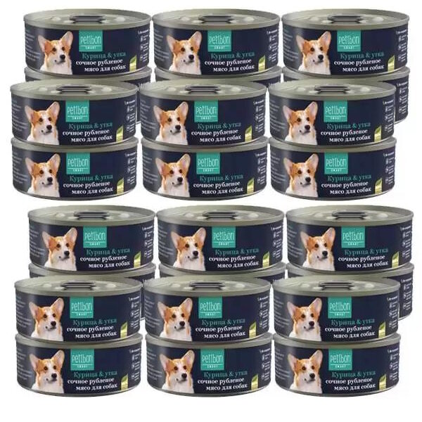 Petibon Smart влажный корм для взрослых собак, рубленое мясо с курицей и уткой, в консервах - 100 г х 24 шт