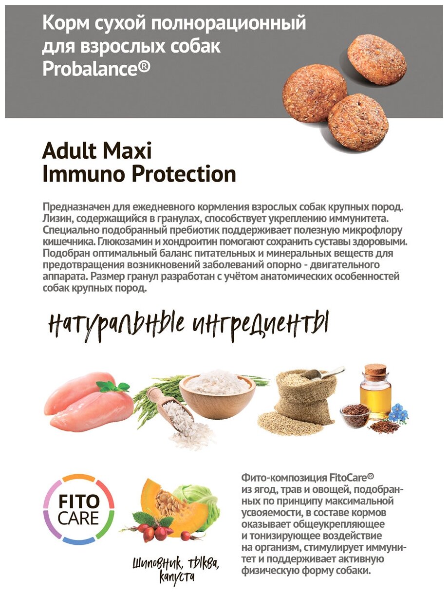 Сухой корм для крупных собак Пробаланс Immuno Adult Maxi, защита иммунитета, 15 кг