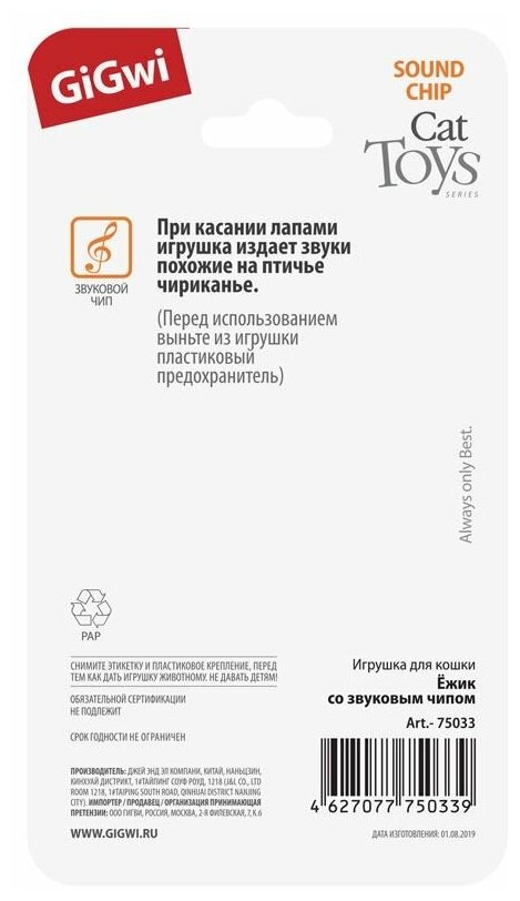 Ниже Вы можете прочитать отзывы на 75033 Игрушка для кошек Ёжик со звуковым чипом 7см, серия MELODY CHASER, ознакомится с подробными характеристиками, посмотреть интересные обзоры и фотографии на 75033 Игрушка для кошек Ёжик со звуковым чипом 7см, серия MELODY CHASER.