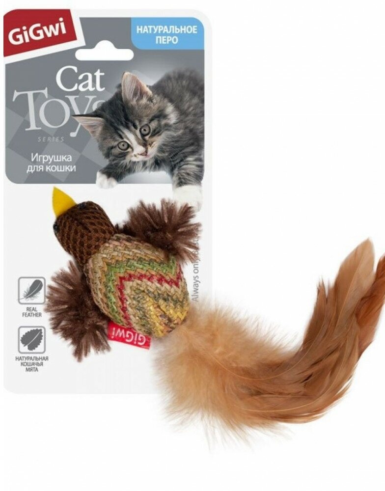 Игрушка для кошек GiGwi Cat Toys Птичка с перьями (75264), коричневый, 1шт.
