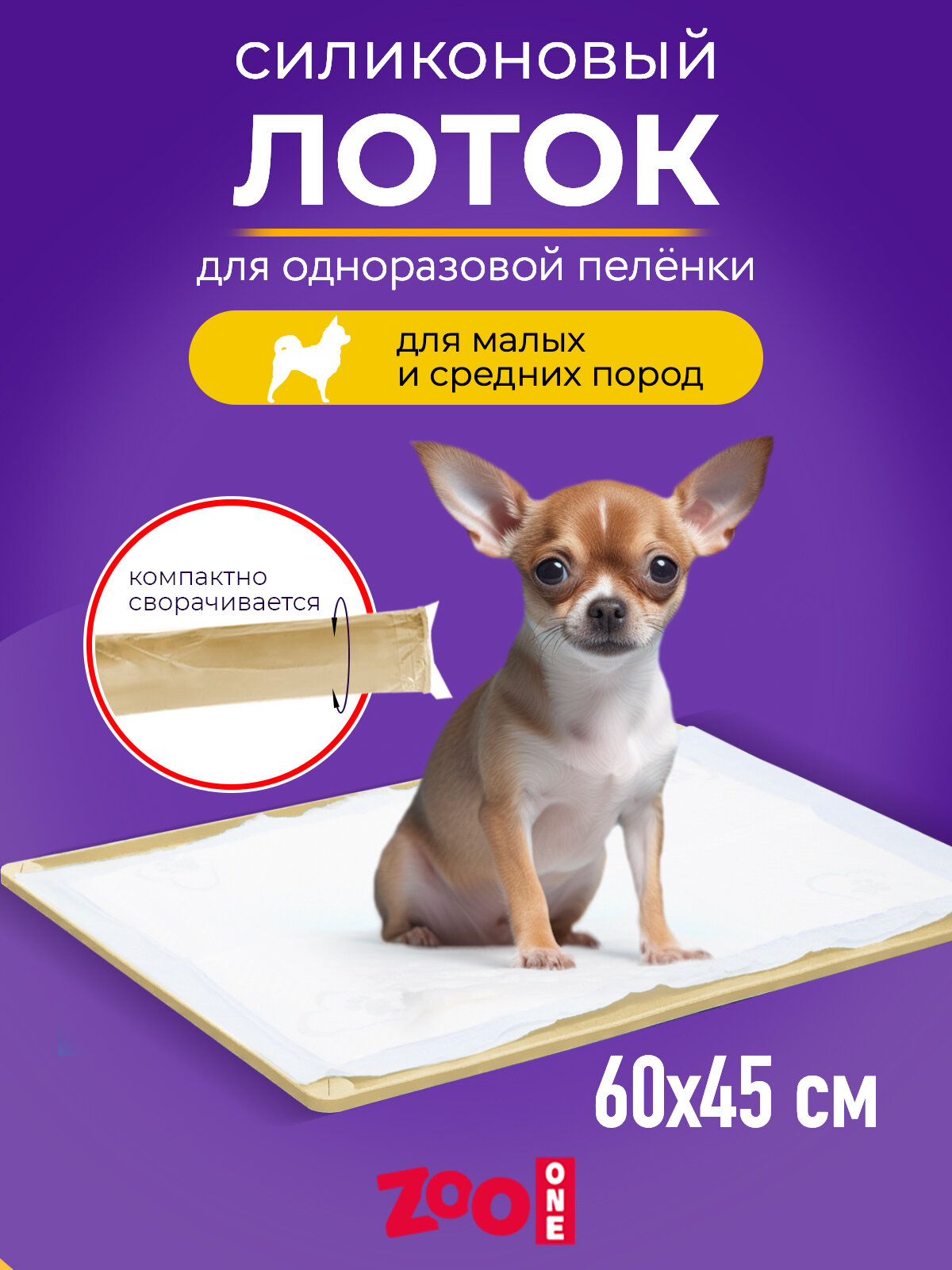 Купить Туалет-коврик с бортиками силиконовый 60*45 см (бежевый) под пелёнку 60*40 и 30*40 см Zooone