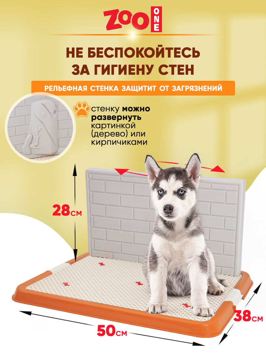 Туалет для собак ZooOne со стенкой малый 50х38х7 см 50 см 38 см 7 см 1 шт. серый