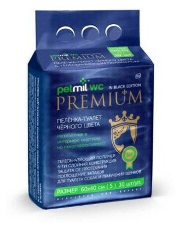 PETMIL Пеленки BLACK Premium впитывающие гелевые, 60х40 см (в наборе 10 шт)