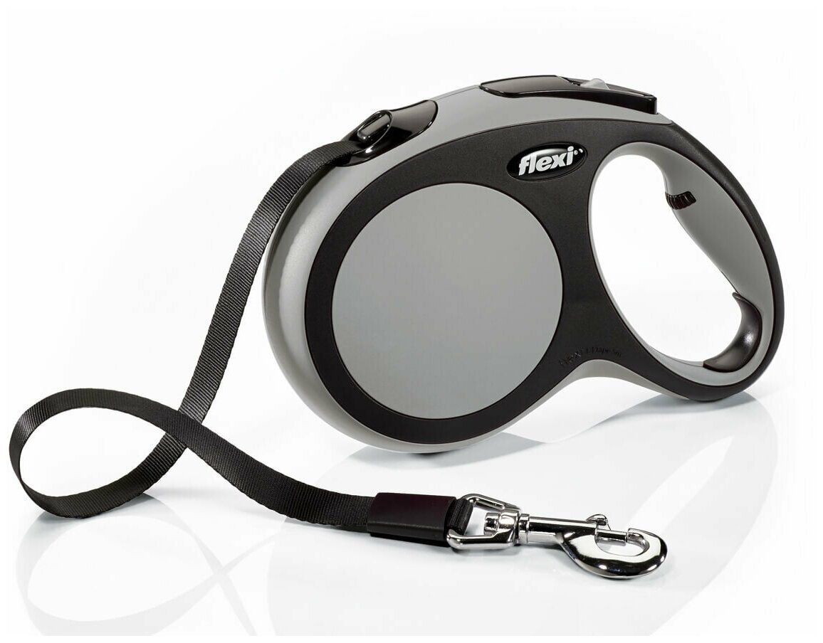 Поводок-рулетка для собак Flexi New Line Comfort (S) 5 м./до 15 кг. (серый/черный, лента)
