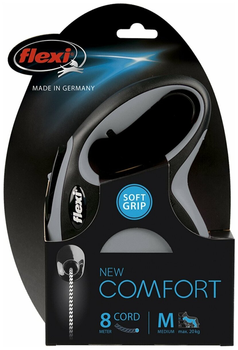 FLEXI NEW COMFORT CORD тросовый поводок рулетка для животных 8 м размер M черный (1 шт)