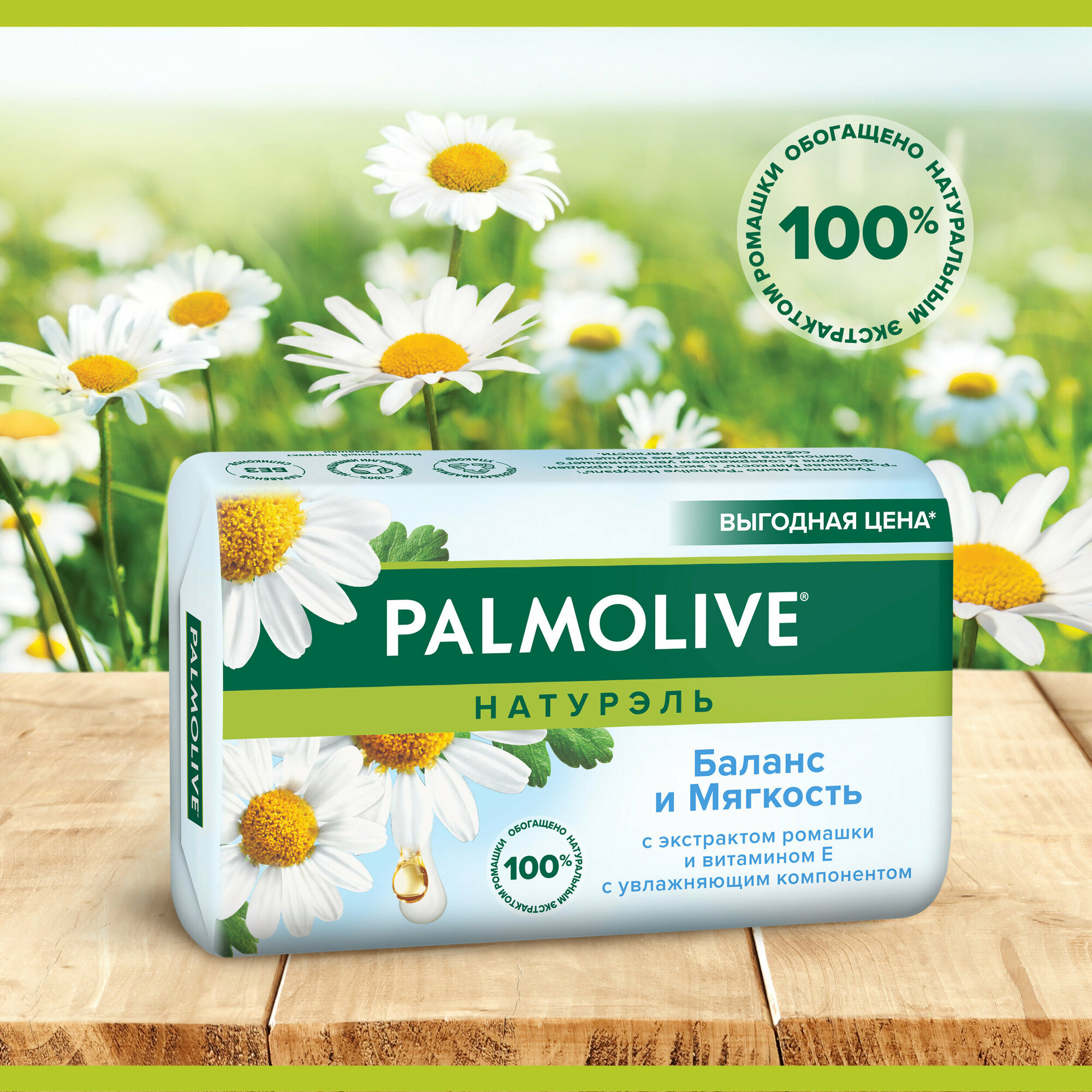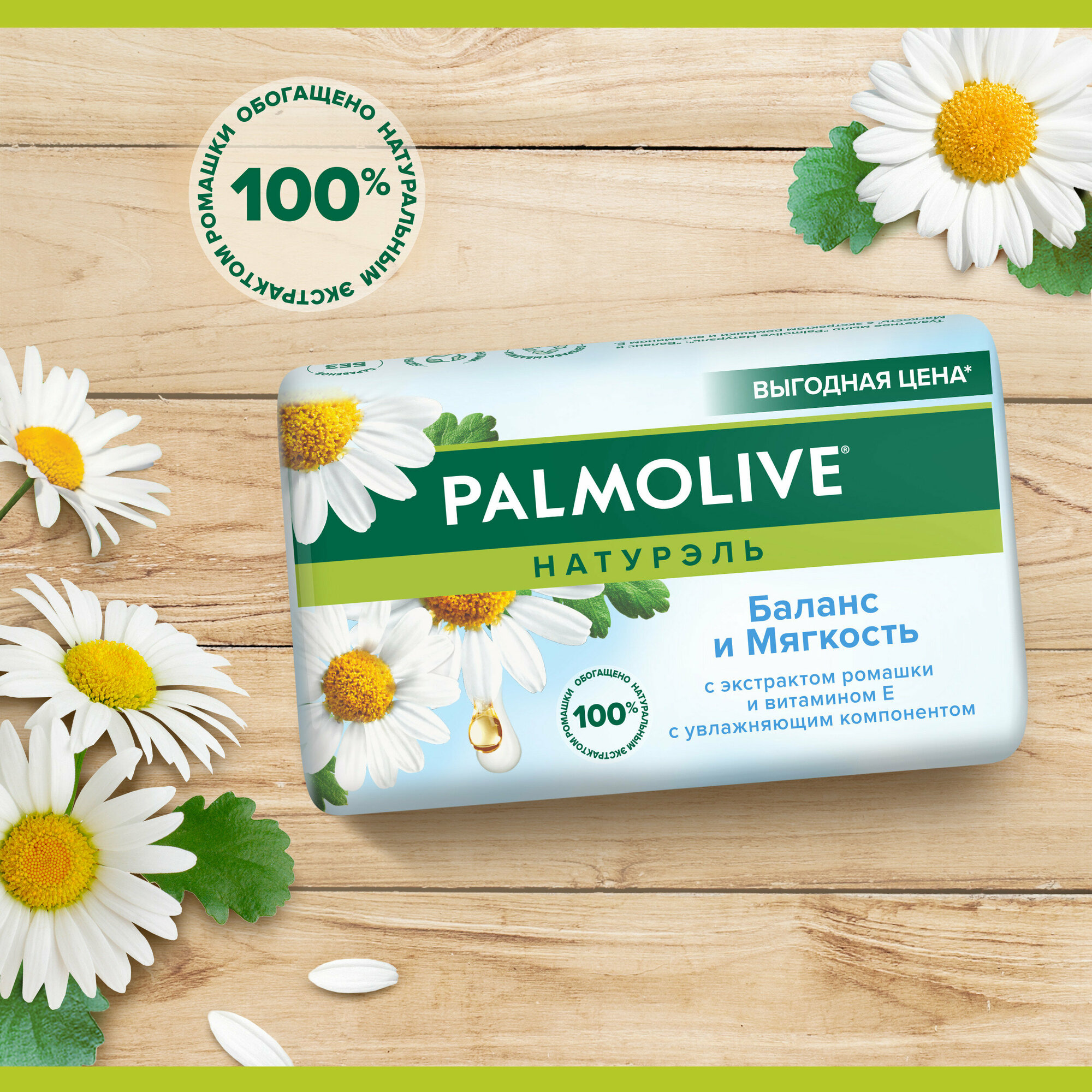 Мыло Palmolive "Натурель", Баланс и Мягкость, с экстрактом ромашки и витамином Е4, 90 г