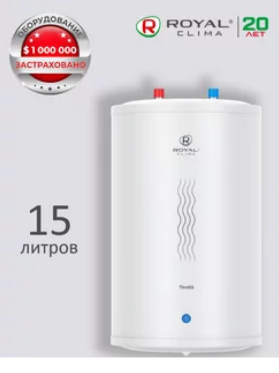 Водонагреватель электрический накопительный (бойлер) 15 л TinoSS 1200Вт (подключение сверху) круглый корпус RWH-TS15-RSU ROYAL Clima