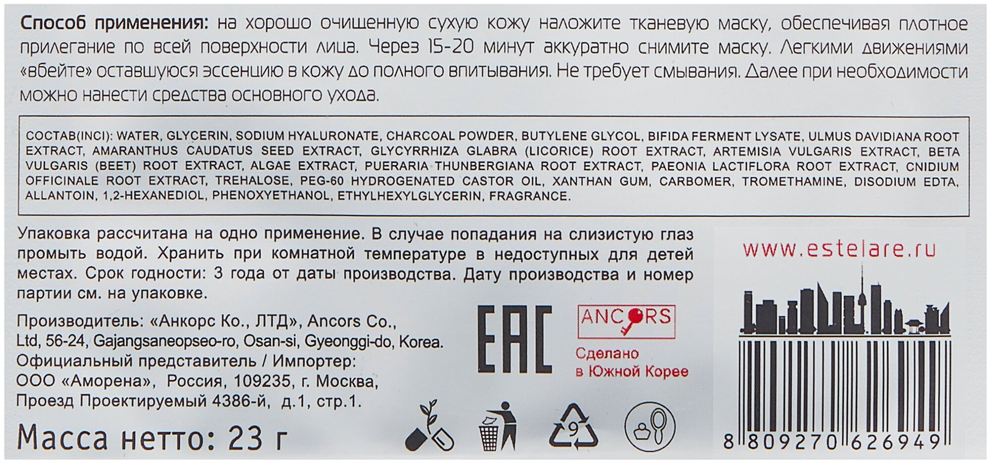 Estelare Ампульная маска для лица Глубокое очищение и детоксикация, 23 г