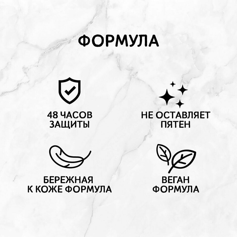 | Плюсы: | Не содержит солей алюминия, не блокирует деятельность потовых желез. |