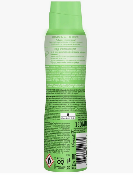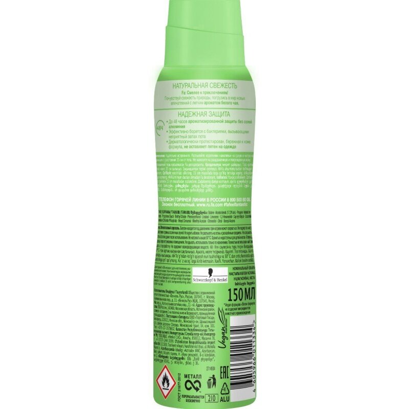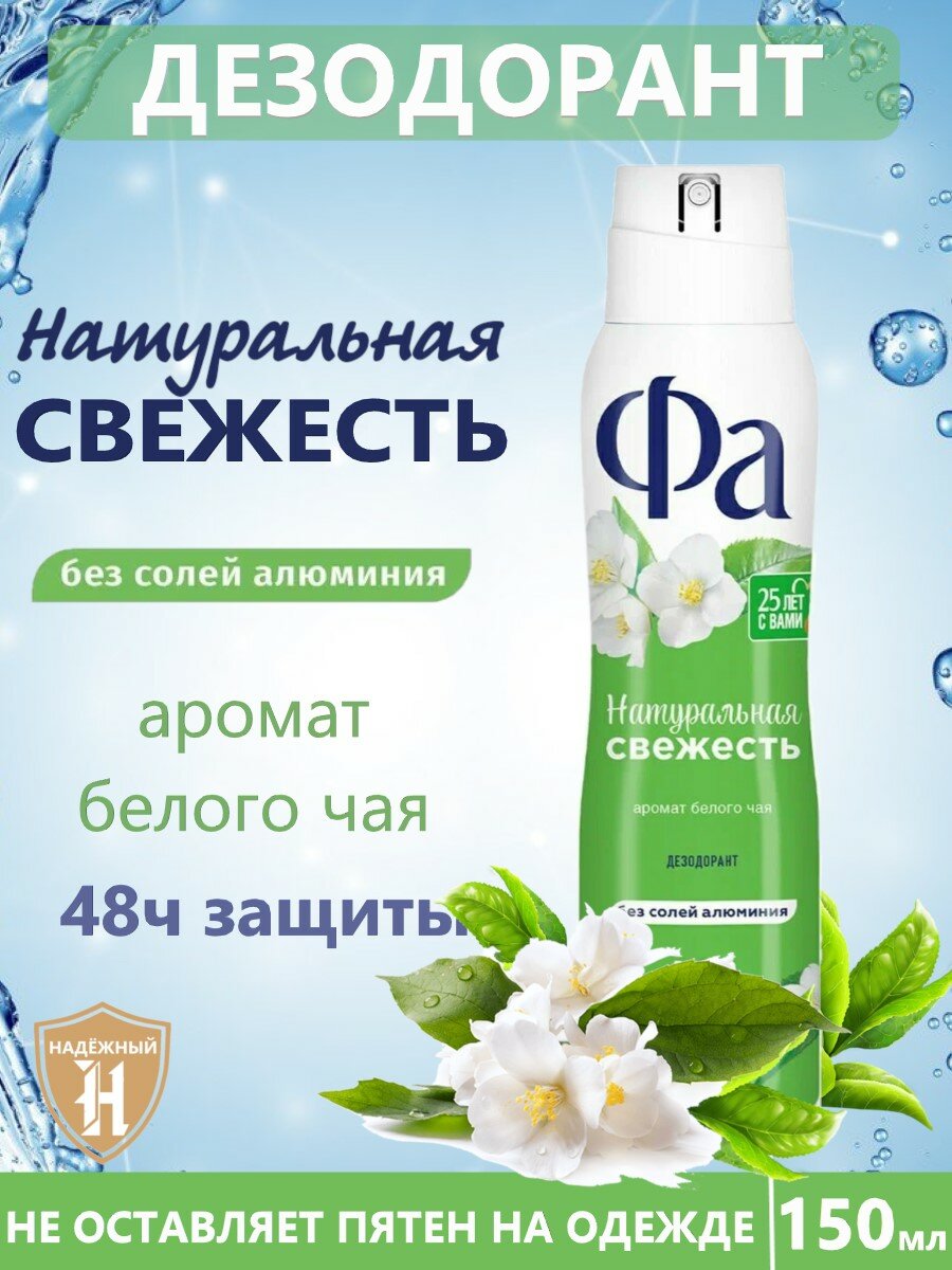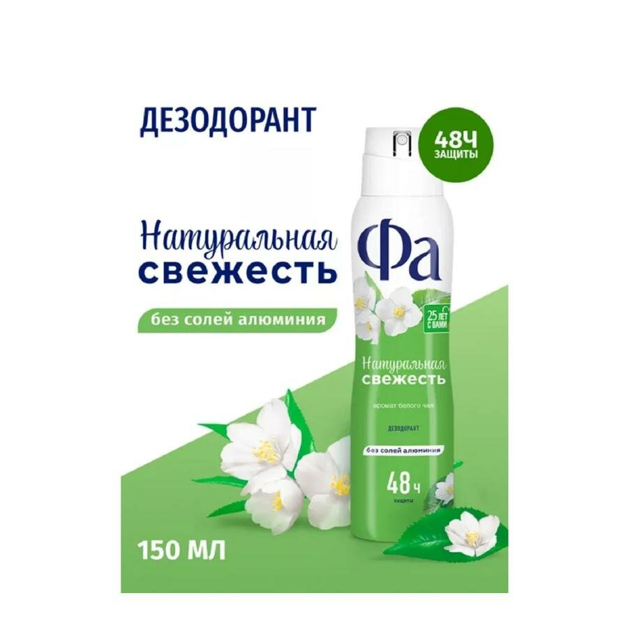 Фа Дезодорант Натуральная Свежесть Аромат белого чая, спрей, флакон, 150 мл, 150 г, 1 шт.
