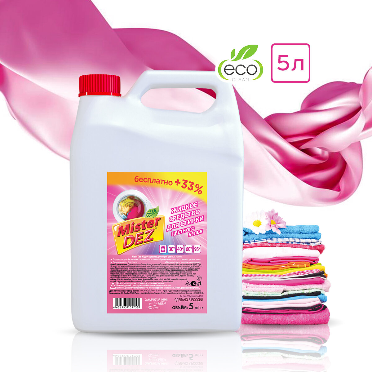 Жидкость для стирки Mister Dez для цветных тканей, 5 л, бутылка