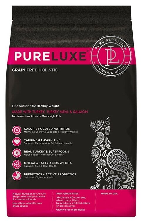 PURELUXE элитное питание беззерновой для нормализации веса для взрослых кошек с индейкой и лососем (1,5 кг)