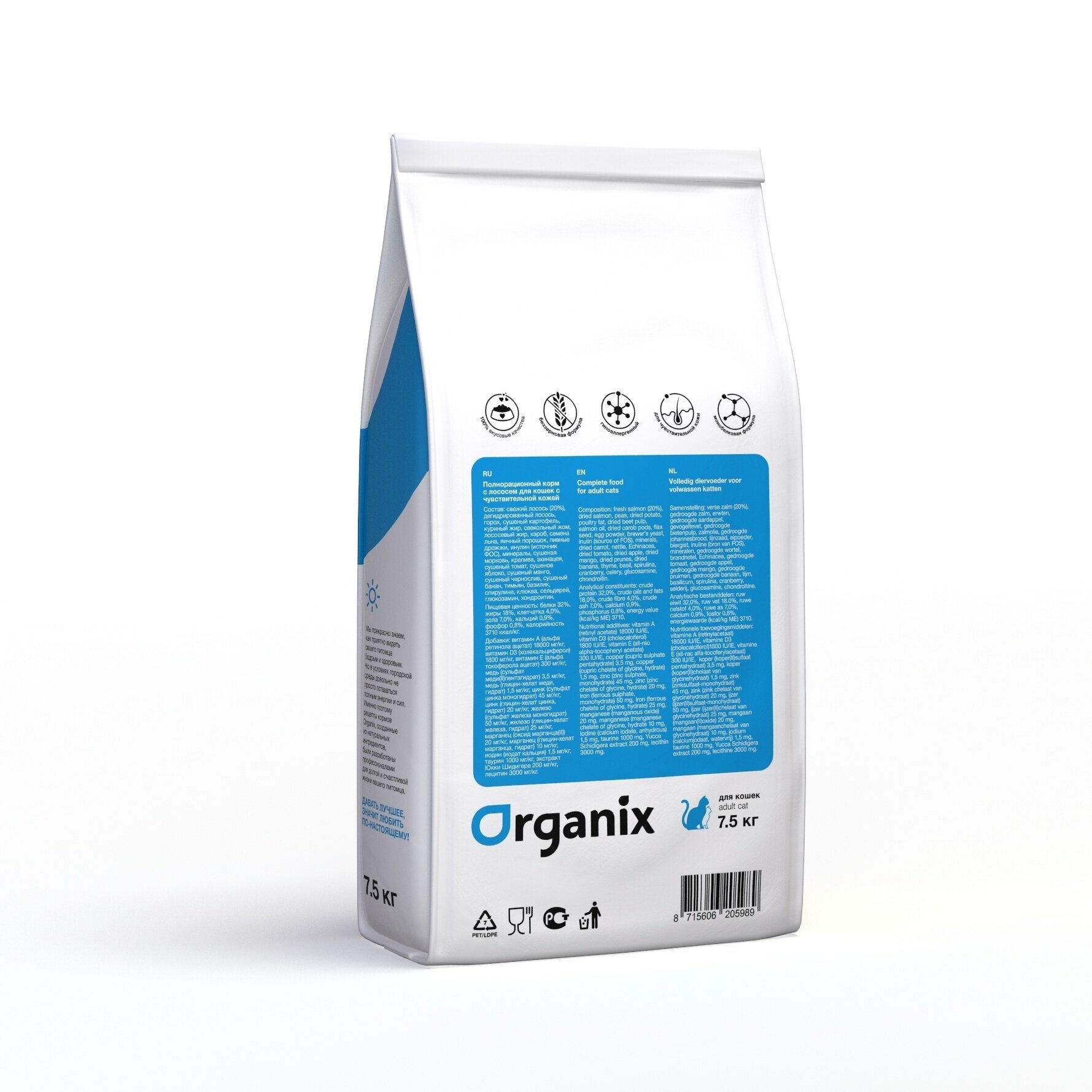 Сухой корм Organix для кошек с чувствительной кожей, со свежим лососем, 7,5 кг