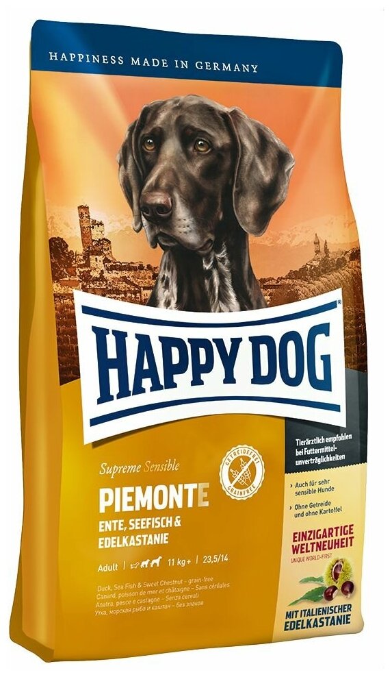 Сухой корм для собак Happy Dog Supreme Sensible Piemonte, утка, морская рыба, с каштаном 1 уп. х 1 шт. х 4 кг (для средних и крупных пород) интересное: