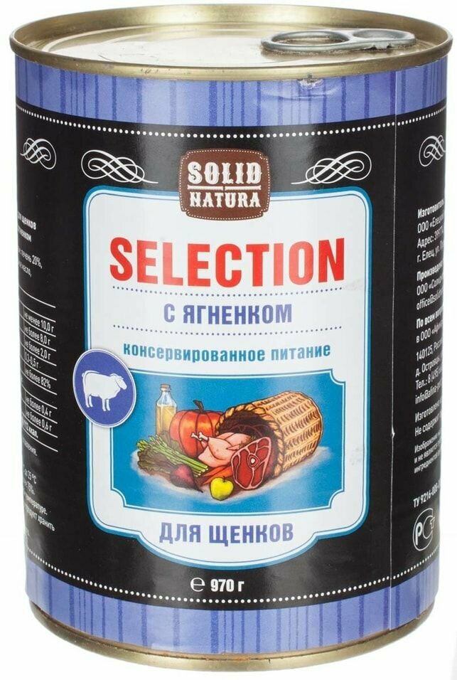Консервы для щенков Solid Natura Selection с ягненком 970 г.