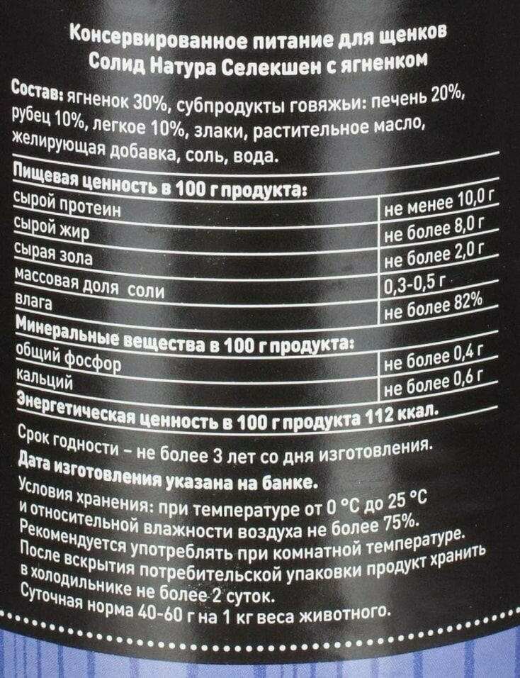 Влажный корм для щенков, Solid Natura Selection, ягненок, упаковка 6 шт х 970 г