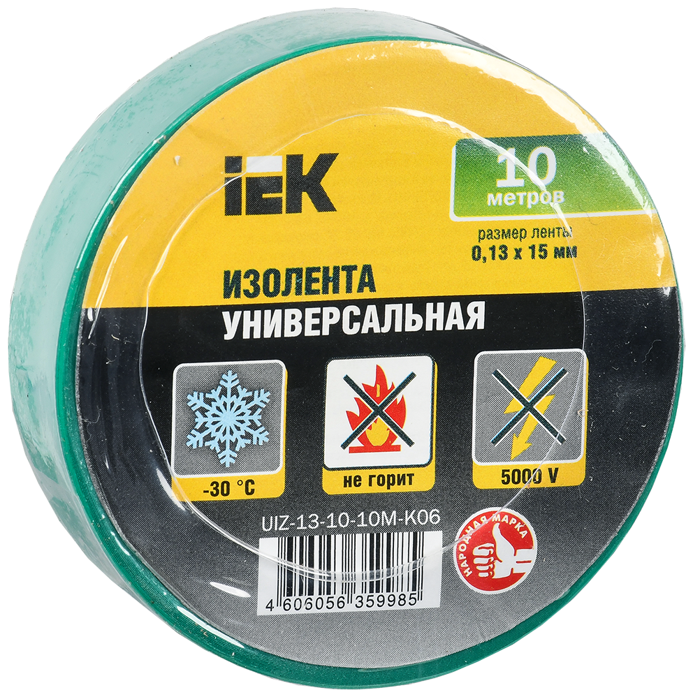 Изолента IEK UIZ-13-10-10M-K06 ПВХ Зеленый