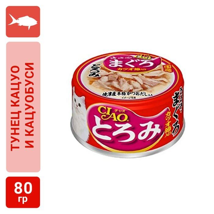 Корм Inaba Ciao Toromi карпаччо из мраморной вырезки японского тунца-бонито, желтоперого тунца и парного филе курицы в бульоне 80г