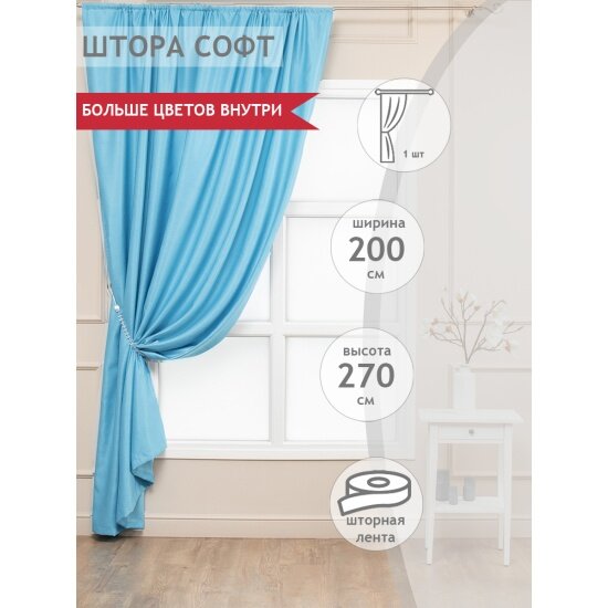 Купить Портьера Amore Mio софт, 200*270 см, бирюзовый