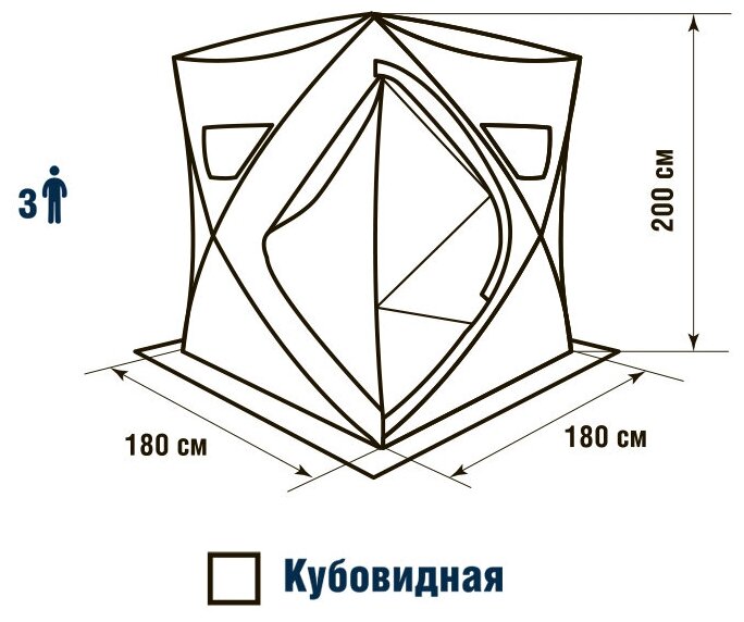 Палатка зимняя Higashi Comfort Pro утепленная 1,8*1,8*2,0м., NYLON 300D THERMAL, 3-местн.