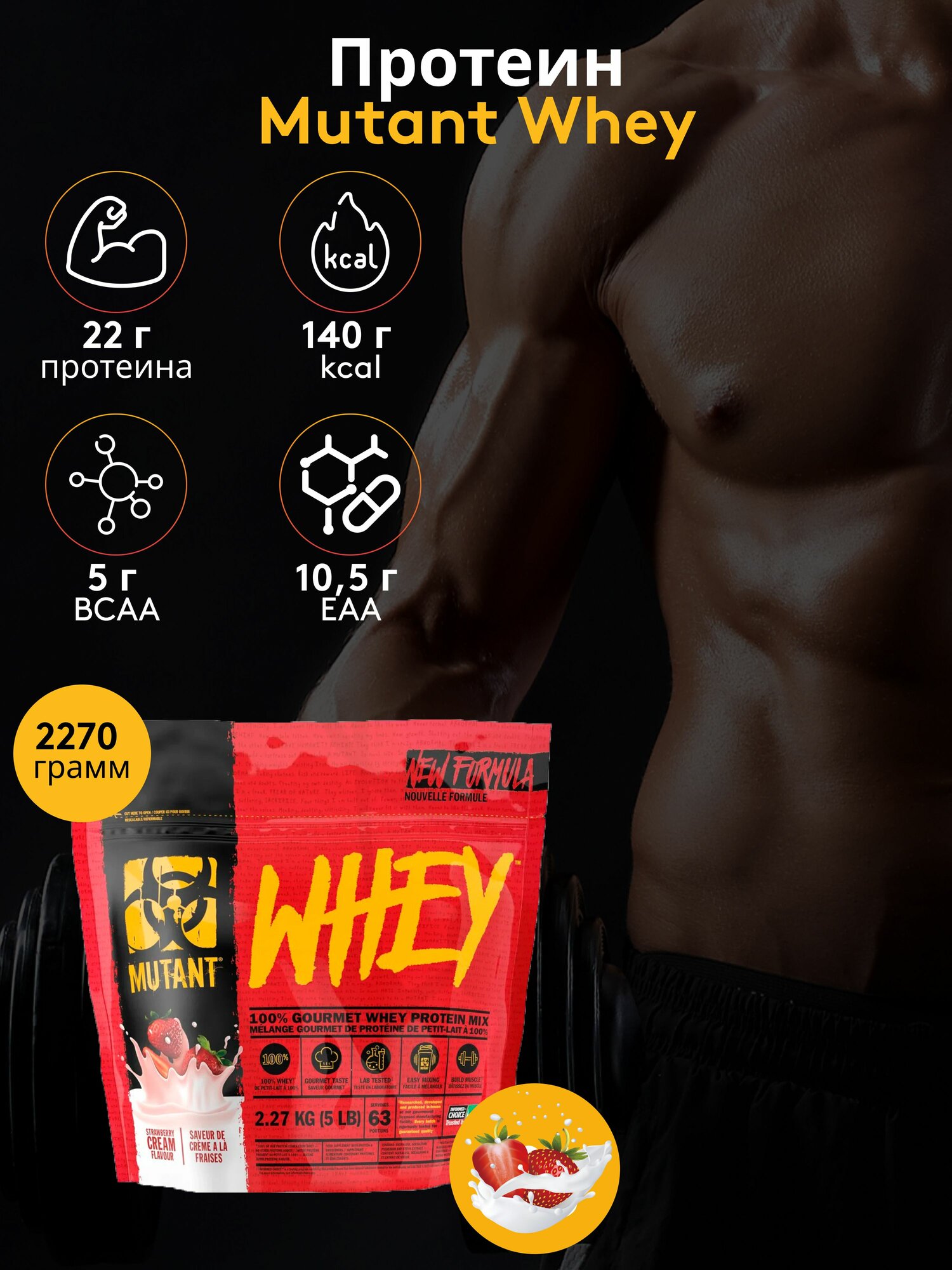 Протеин Mutant Whey 2270 г, Клубничный крем