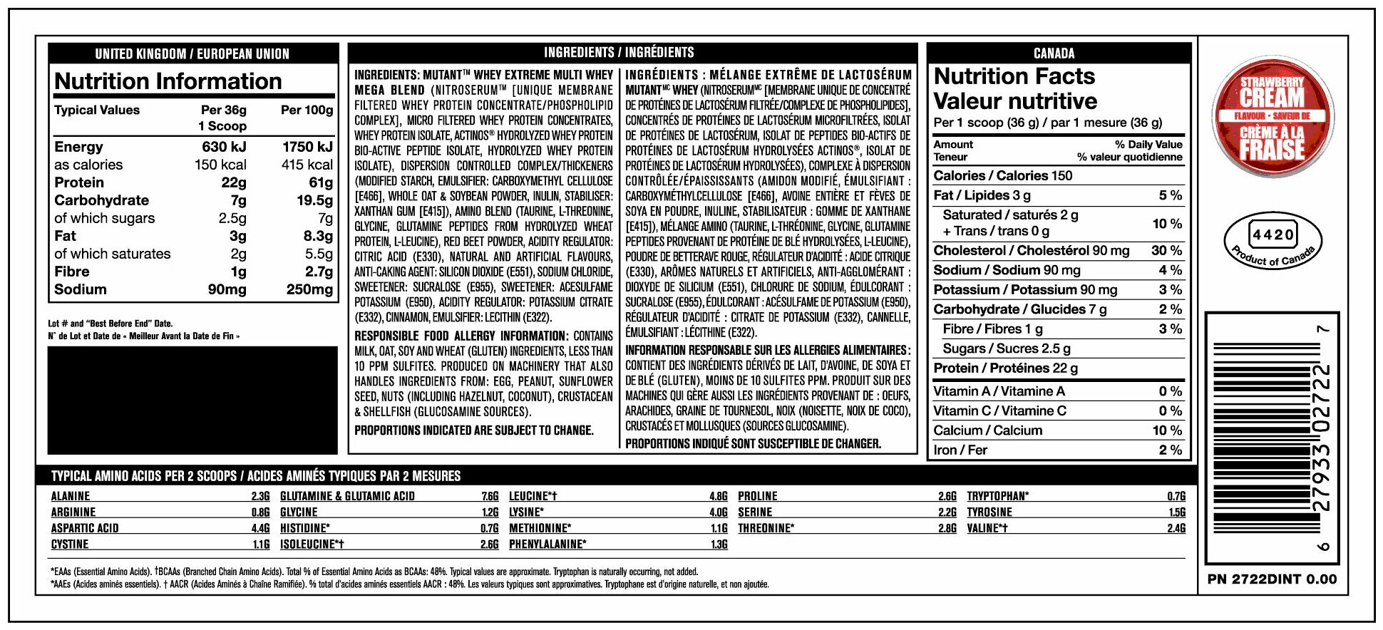 Mutant Whey (2,27 кг) - Клубничный Крем
