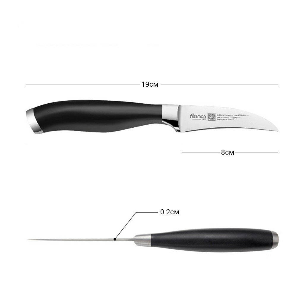 2477 FISSMAN Нож для чистки овощей ELEGANCE 8см "коготок" (X50CrMoV15 сталь)