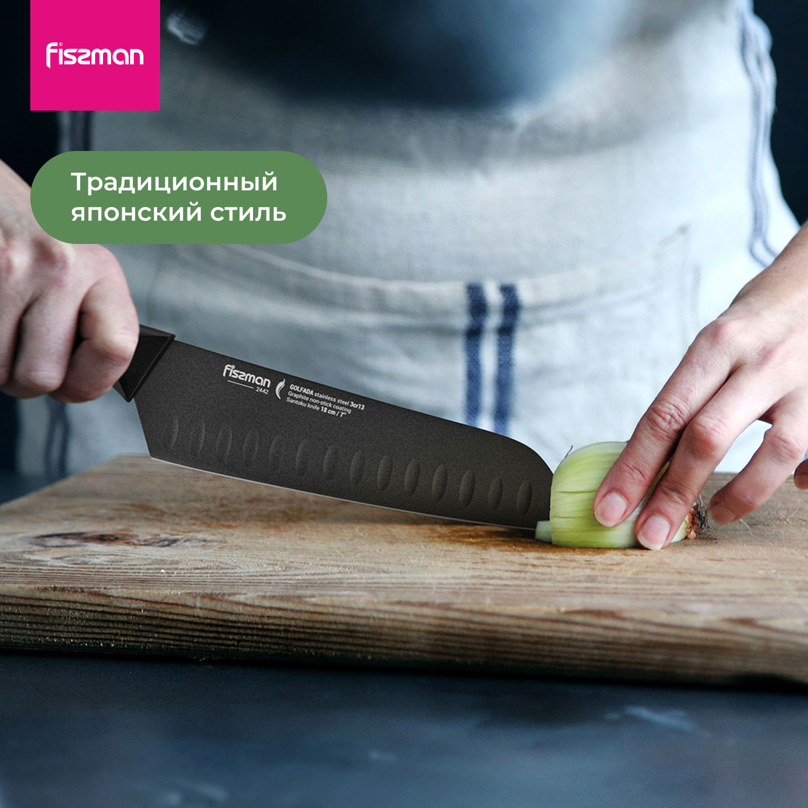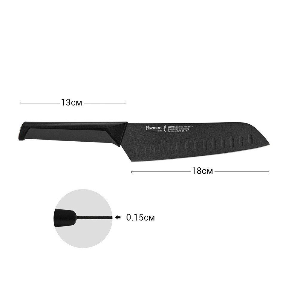Нож Fissman GOLFADA Сантоку 18 см с покрытием Graphite (2442) интересное: