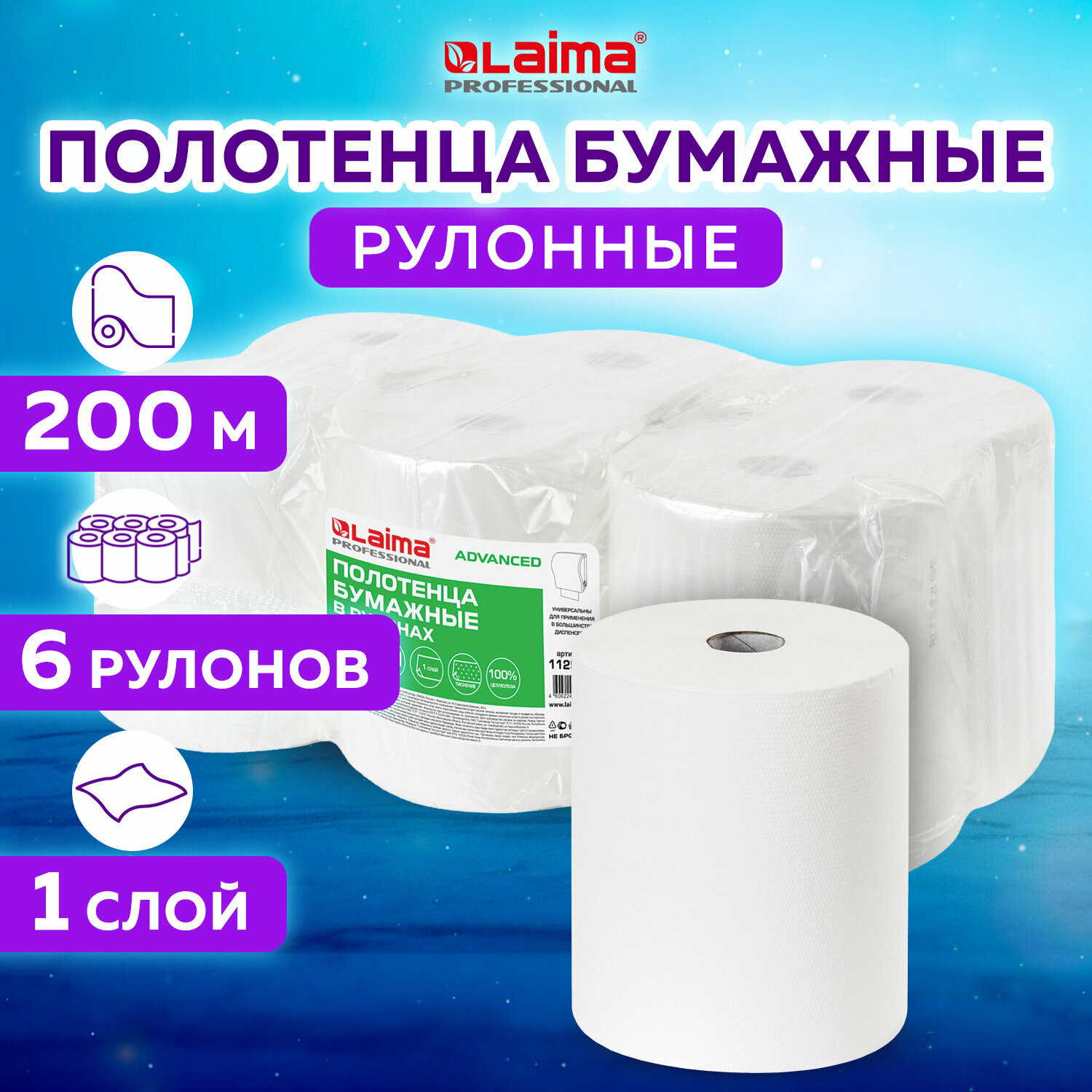 Полотенца бумажные в рулонах Veiro Professional "Basic", 1-слойные, 180м/рул, белые, 6 шт.