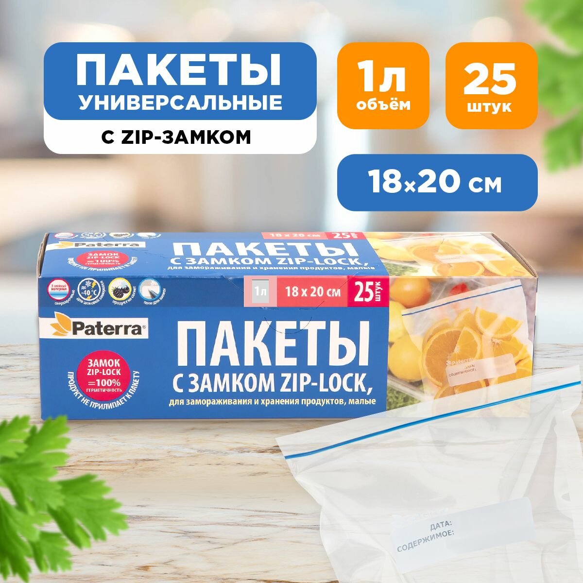 Пакеты PATERRA для хранения и замораживания с зип-замком 18х20 см, 1 л, 25 шт