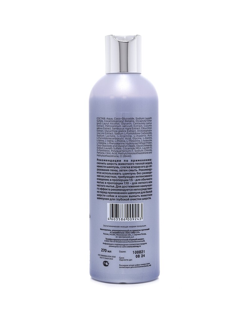 | Плюсы: | Качественный шампунь для белой шерсти. |