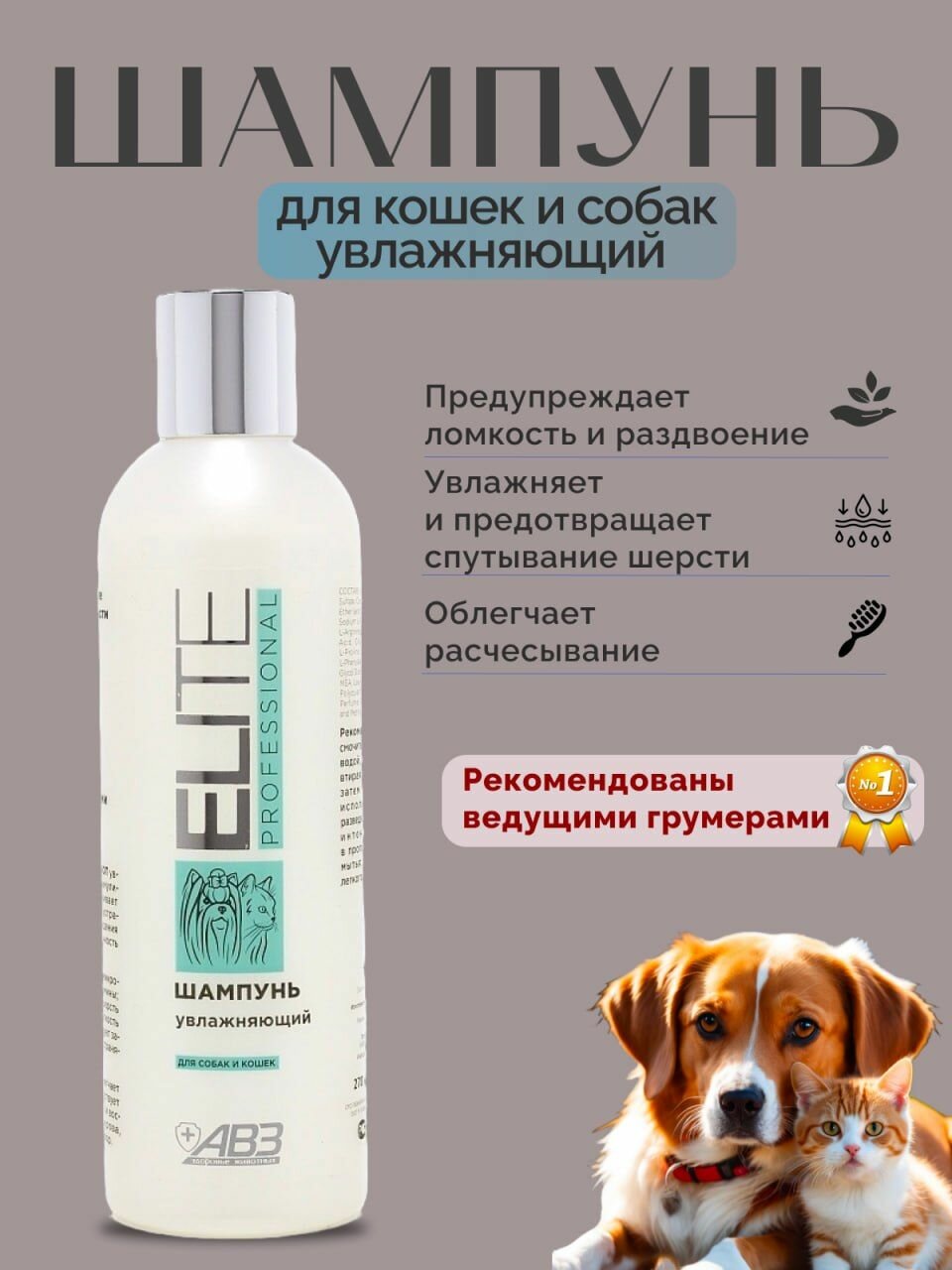 ELITE PROFESSIONAL – Элита шампунь для собак и кошек увлажняющий АВЗ (270 мл)