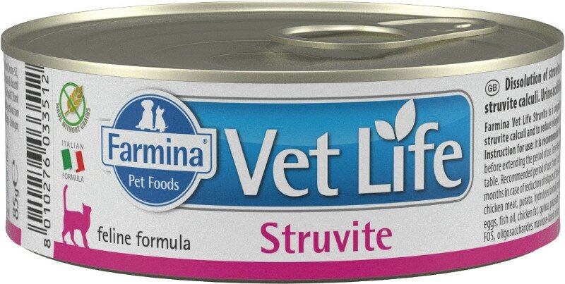 Консервы Farmina Vet Life Natural Diet Cat Struvite, диетический, для кошек при заболеваниях мочевыводящих путей/ струвитах, (85 гр.*12 шт.)