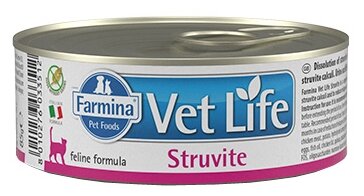 Консервы Farmina Vet Life Natural Diet Cat Struvite, диетический, для кошек при заболеваниях мочевыводящих путей/ струвитах, (85 гр.*12 шт.)