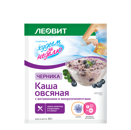 Худеем за неделю леовит Каша овсяная "Черника" с витаминами и микроэлементами. Пакет 40 г