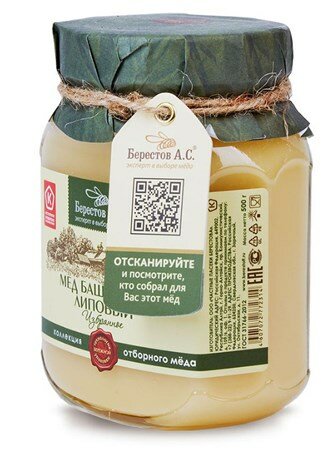 Мёд натуральный "Берестов А.С." Башкирхан Липовый нежный с/б 500г