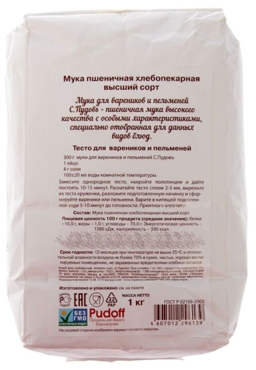 С.Пудовъ Мука пшеничная хлебопекарная в/с, для вареников и пельменей, 1 кг. С.Пудовъ интересное: