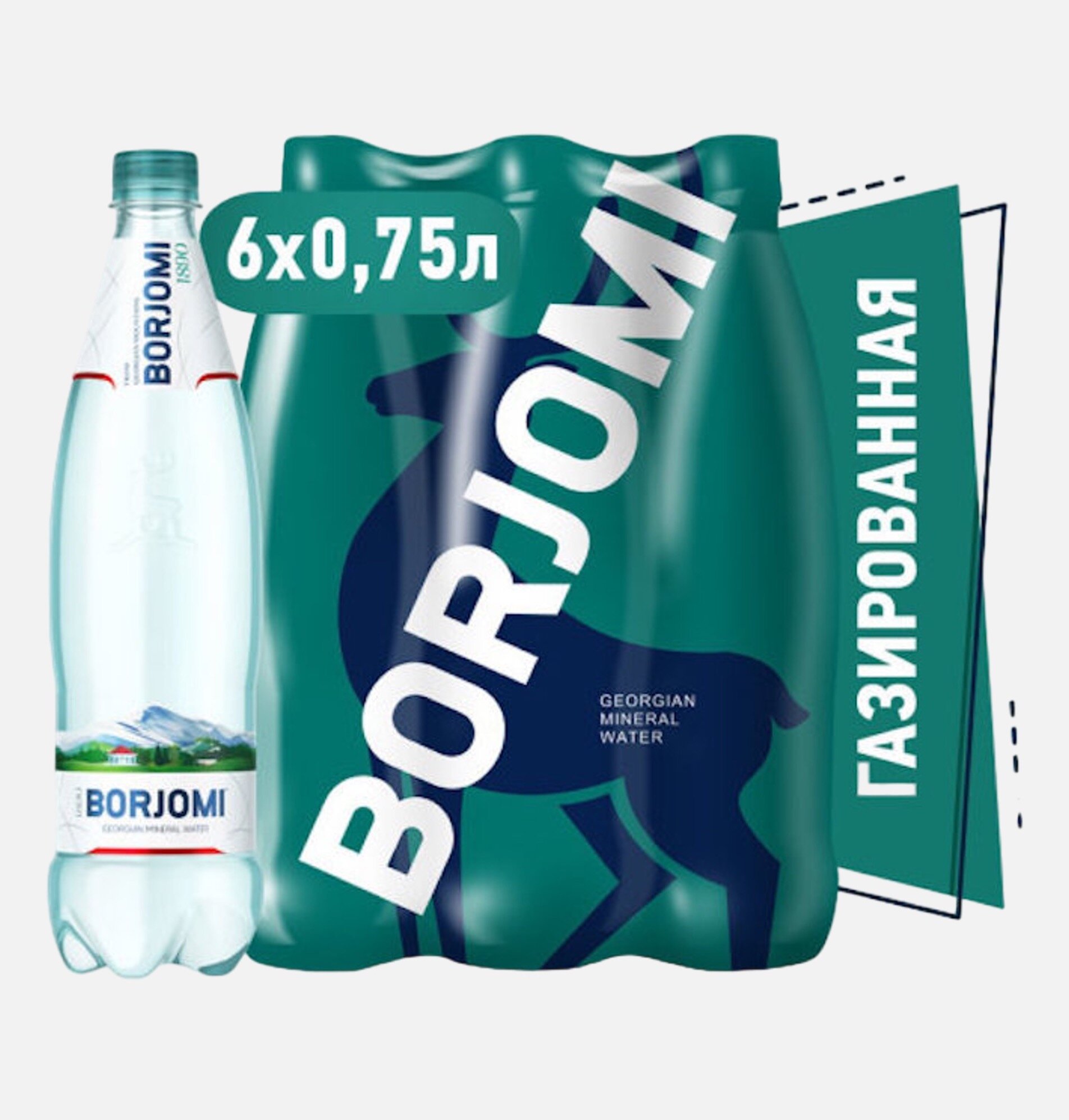 Минеральная вода Borjomi / Боржоми газированная ПЭТ 0.75 л (6 штук)