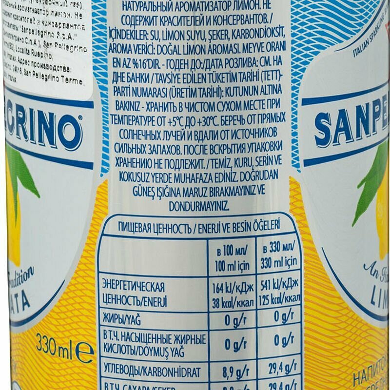 S. Pellegrino Лимон 0,33л./24шт. Ж/банка Сан Пеллегрино Напиток газированный с соком