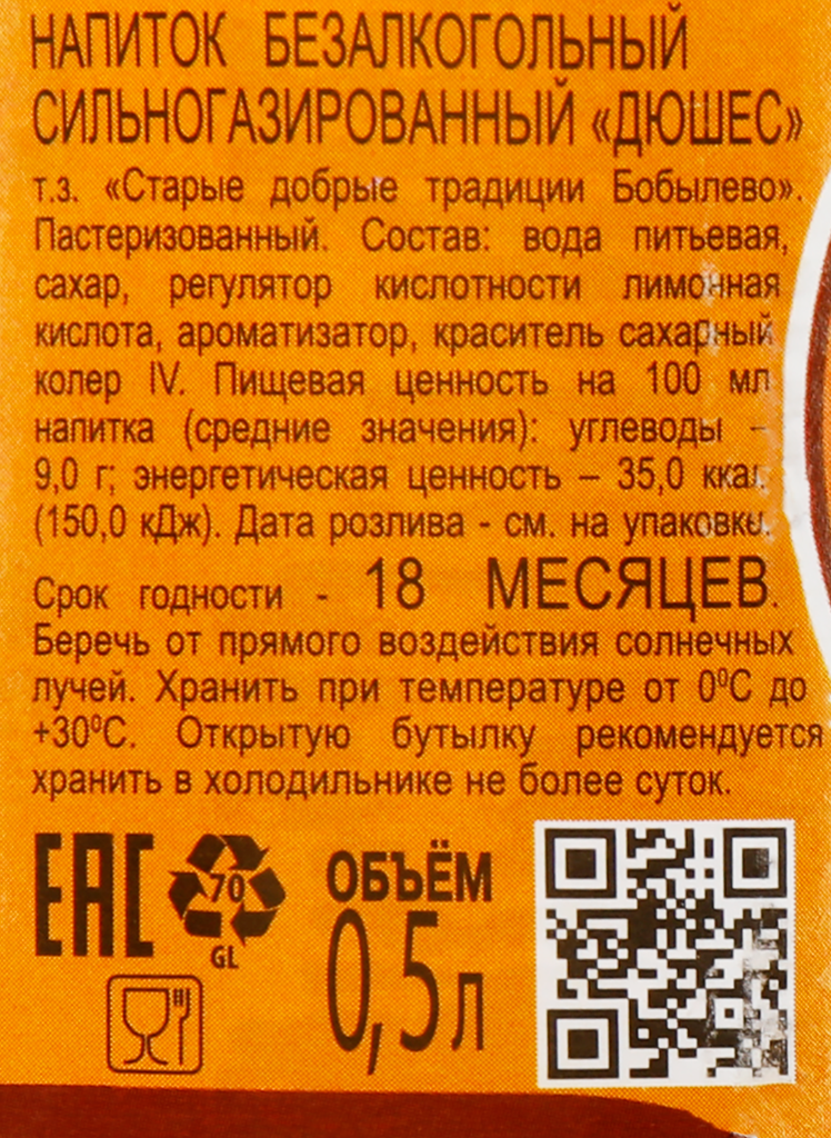 Напиток старые добрые традиции Дюшес газированный, 0.5л
