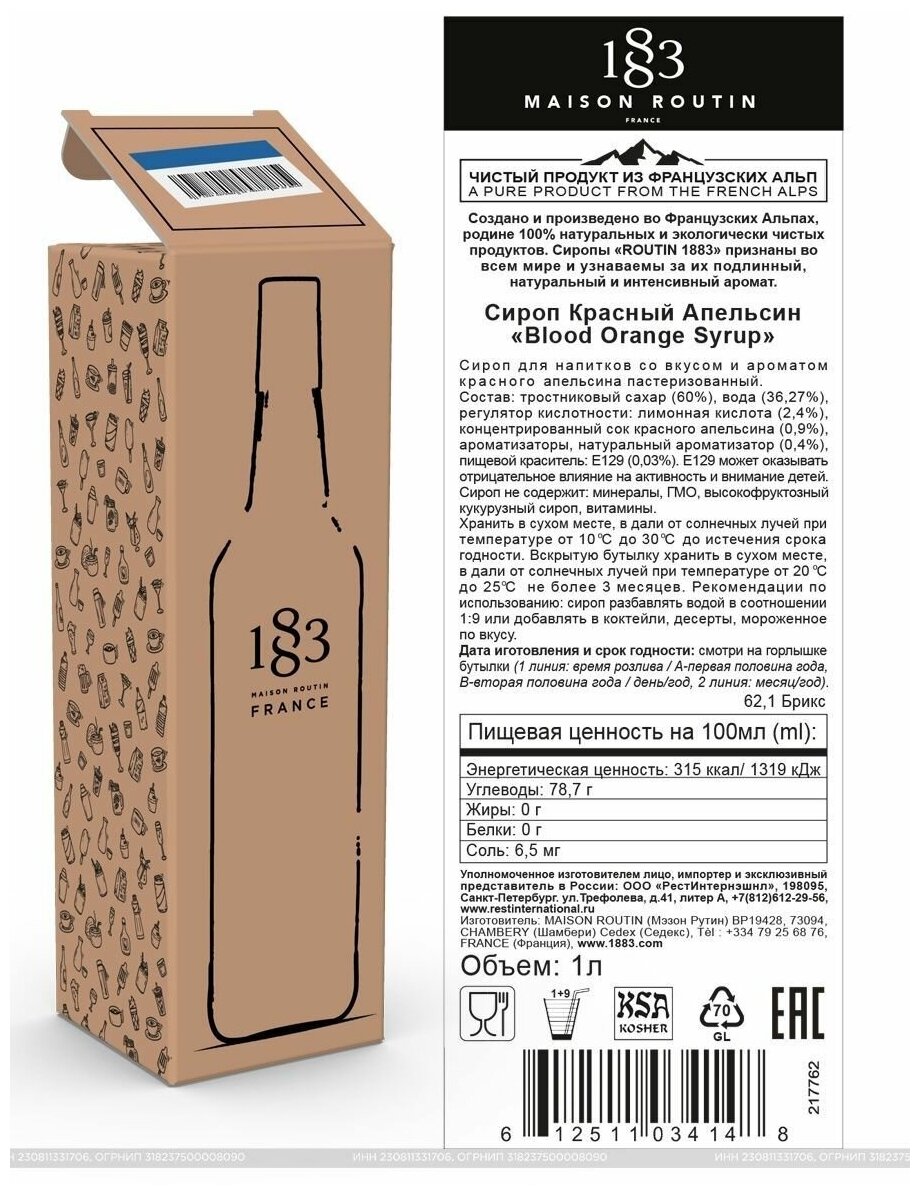 Сироп 1883 Maison Routin Апельсин красный, стекло, 1л .