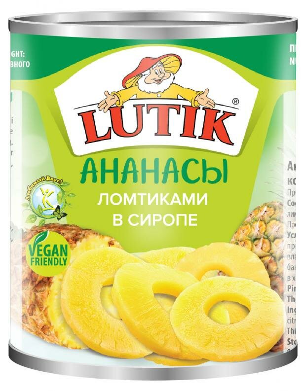 LUTIK Ананасы консервированные LUTIK, шайба, ж/б, 580 мл
