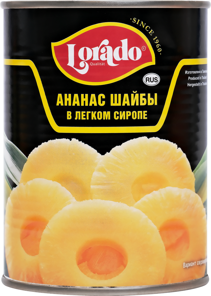Ананас Lorado шайбы в легком сиропе, 580 г