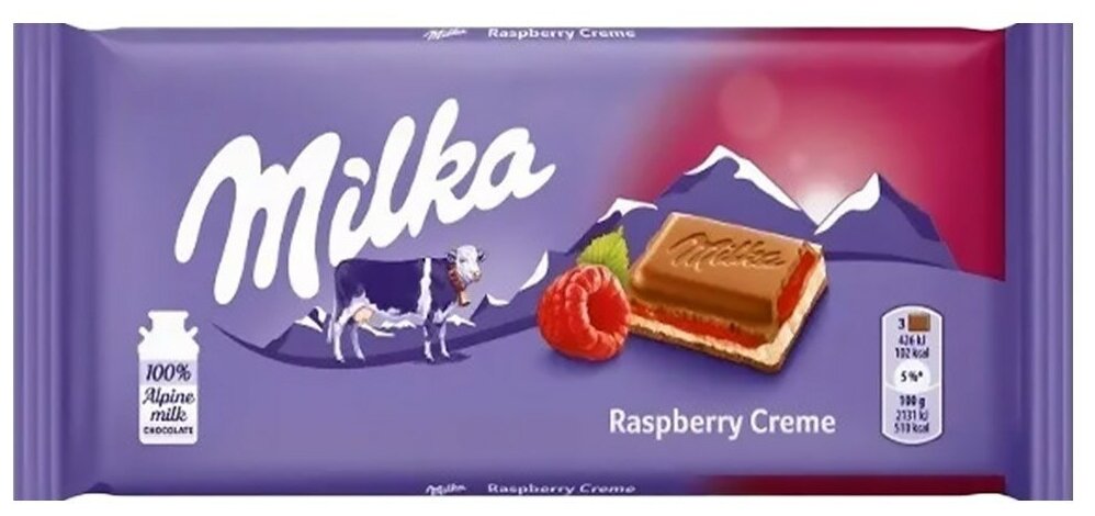 Шоколад Milka Raspberry Cream молочный с малиново-сливочной начинкой, 100 г интересное: