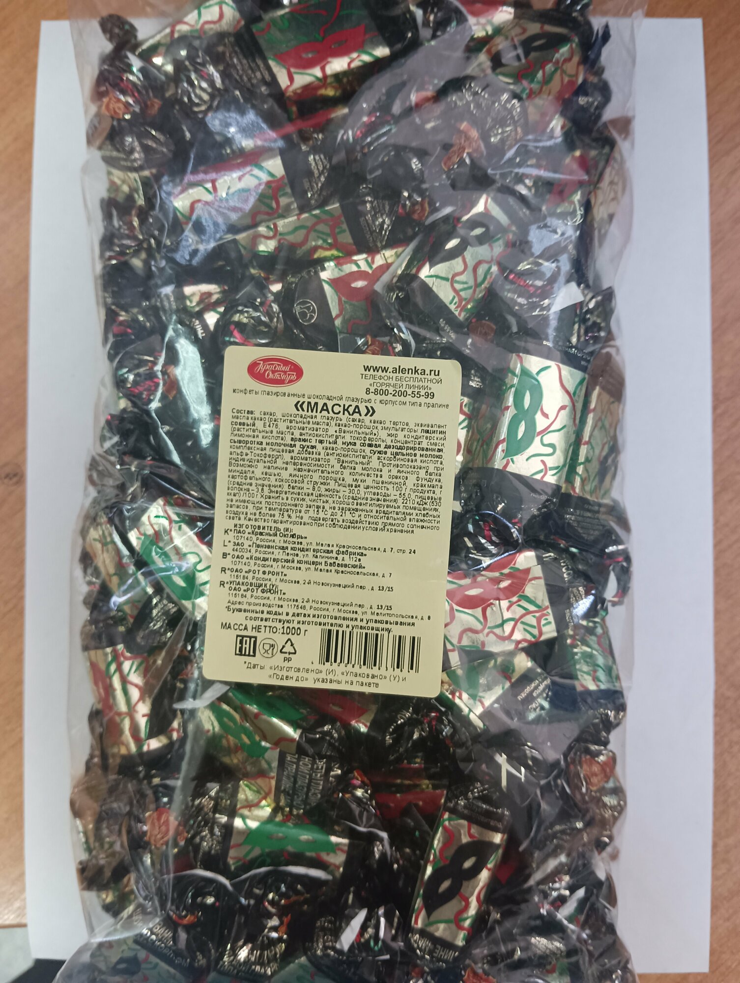Ниже Вы можете прочитать отзывы на Конфеты шоколадные красный октябрь "Маска", 1 кг, пакет, РФ14314, ознакомится с подробными характеристиками, посмотреть интересные обзоры и фотографии на Конфеты шоколадные красный октябрь "Маска", 1 кг, пакет, РФ14314.