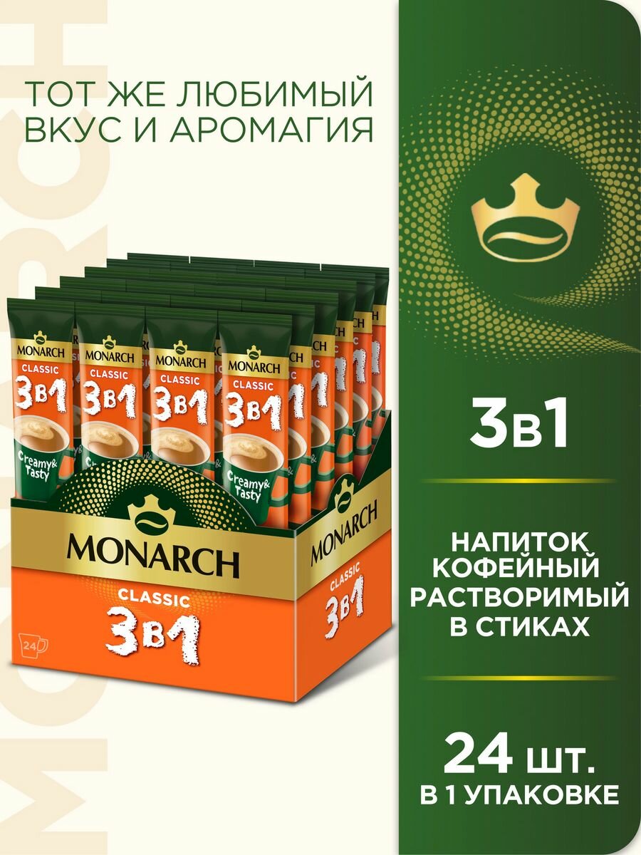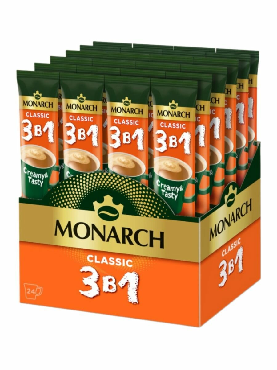 Напиток кофейный растворимый Monarch 3 в 1 Классика, в стиках, 24 шт по 13.5 г